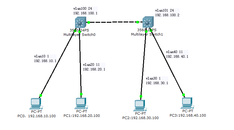 (1)掌握三层交换机之间通过OSPF协议实现网段互通的配置方法。