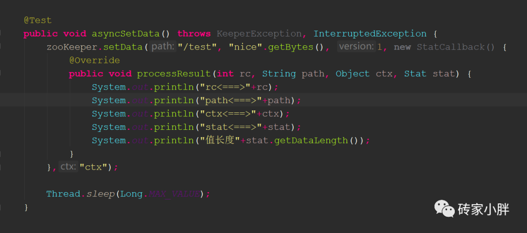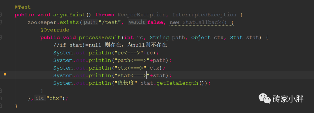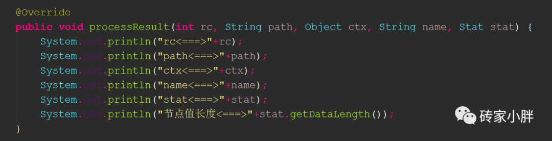 stat:节点状态数据封装,比如stat.getDataLength,可获得节点值的长度,其实就是上篇文章我们讲的这个玩意。
