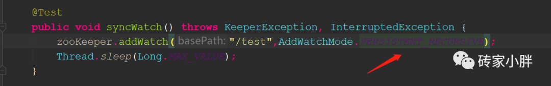 AddWatchMode.PERSISTENT:只监听test该级节点,并不会监听子节点事件。