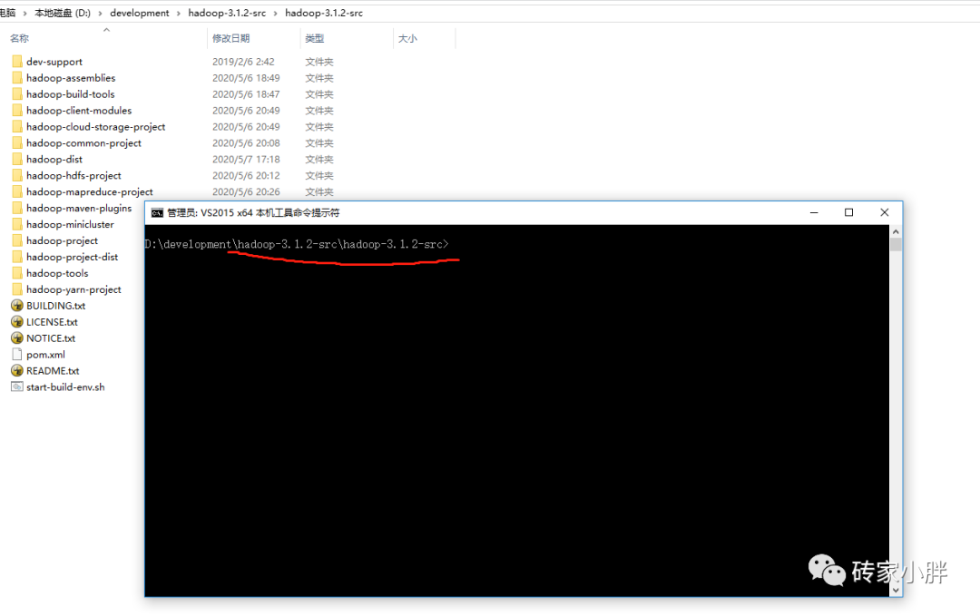 进入到源代码目录D:\development\hadoop-3.1.2-src\hadoop-3.1.2-src