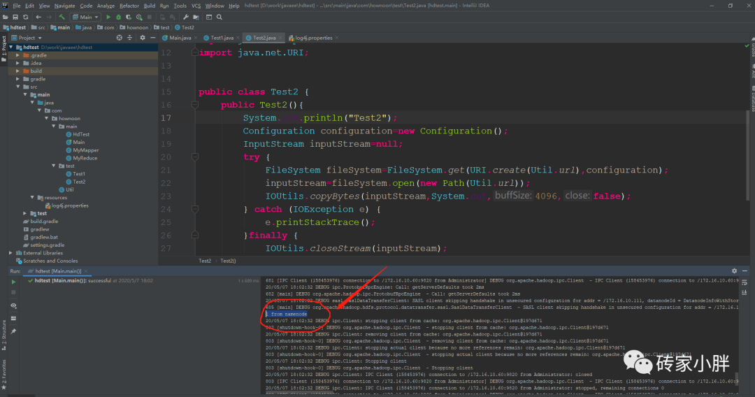 测试工程正常读出HDFS文件数据,不在爆异常。