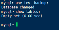 也可以使用mysql test_backup < /opt/backup/mysql/logic/full/2019-09-09.sql进行恢复。该命令不需要登录进入mysql命令行执行,而是在服务器命令行执行。