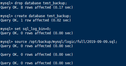 source /opt/backup/mysql/logic/full/2019-09-09.sql;
