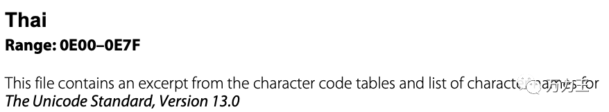 泰语字符(http://www.unicode.org/charts/PDF/U0E00.pdf),范围是\u0E00~\u0E7F。