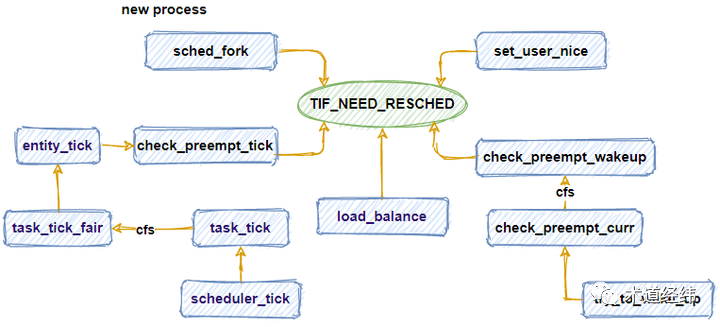 设置该标志位的时间点有几处,其中最典型的,一是任务唤醒的时候,二是周期性 tick 发生的时候。