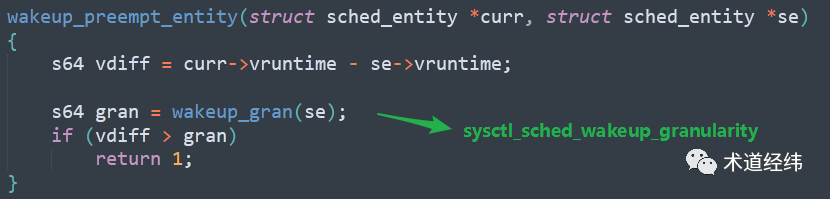 为了避免任务过于频繁切换(over-schedule)带来的开销,要求两者 vruntime 的差值,需大于"sched_wakeup_granularity_ns" (就好像很多体育比赛,不是打到局分就结束,需要至少多 2 分才算赢下这一局)。
