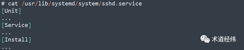 一个 service 在传统的 Linux 系统中通常被实现为 daemon,在 systemd 中则被抽象成了unit,SysV 中的 init script 在 systemd 中被替换成了 unit file,以大家常用的 sshd 为例,它大概长这样(省略号的部分将在后文展开讲述):