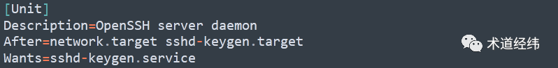 接下来好好看看一个 uint file 中的三部分内容分别表示什么(还是以 sshd.service 为例):