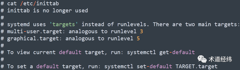 那基于 target,怎样在命令行和 GUI 之间切换呢?熟悉 "runlevel" 概念的你,可能还是习惯性地会去 "/etc/inittab" 中寻找答案。