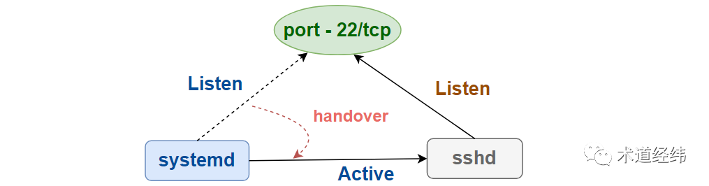 那在 sshd 得到 systemd 移交的这个 socket 之前,通过这个 socket 监听的消息岂不是收不到?不用担心,systemd 会把代管 socket 期间收到的消息也一并传给 sshd,不会让消息遗漏。