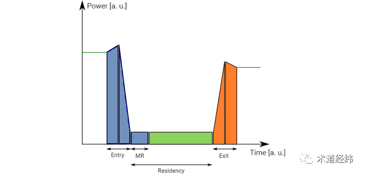休眠模式是存在代价的:进入和退出需要花费时间,退出恢复到正常状态的latency会影响对任务的响应,而且,进入和退出的过程本身也会损失一定的功耗(实际的"Entry"和"Exit"的功耗甚至可能短暂超过正常运行时的功耗)。