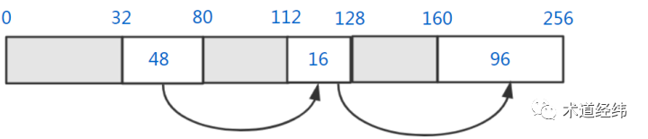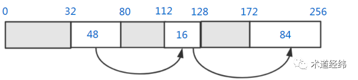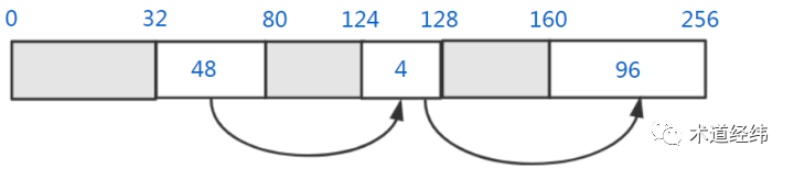 First fit(最先适配),就是从free list头部开始扫描,直到遇到第一个满足大小的空闲内存块,这里第一个48字节的内存块就可以满足要求。这种方法的优点是相对快一些,尤其是满足要求的空闲内存块位于链表前部的时候,但是在控制碎片数量上不是最优的。