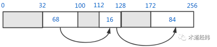 Worst fit(最差适配),也是遍历free list的所有空闲内存块,如果找不到大小刚好匹配的,就从最大的空闲内存块中分配。初看起来很反直觉是不是?但假设接下来的内存申请是64个字节,那只有worst fit的这种方法才能满足需求,所以其价值体现在:分配之后剩下的空闲内存块很可能仍然足够大。