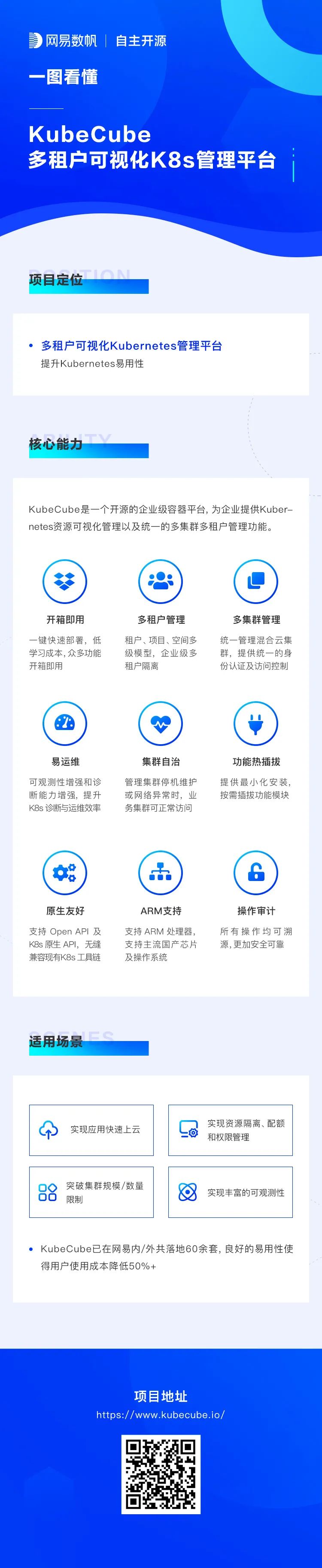 为了帮助企业加快容器化落地进程,网易数帆将沉淀多年的容器平台KubeCube开源,希望为“数字新基建”做出一份贡献,同时希望以此促进国内相关领域的创新,打造国内开放、安全、自主可控的云原生底座,关键时刻,不会被人“卡脖子”。