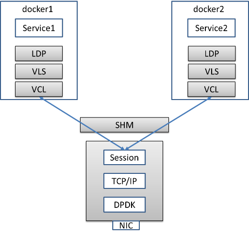 VCL和VPP支持分离部署,并通过共享内存实现高效通信。整个用户态协议栈的实现在后端VPP实现,由于前端VCL的实现功能相对简单,这样可以提高Service对CPU的利用率,从而提升性能。
