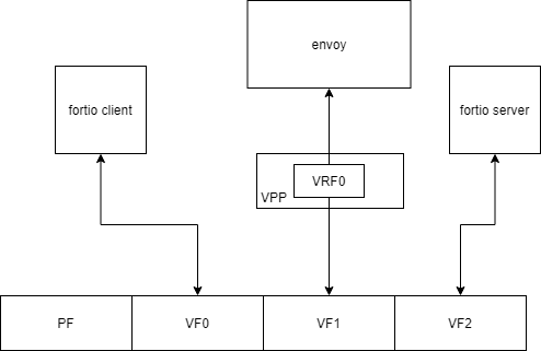 我们使用VF口搭建一个简单的测试环境来测试用户态协议栈相对于内核态协议栈的性能对比情况。