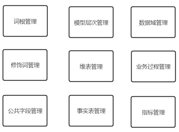 好的规范需要有专业的工具来管理,单靠文档和人工肯定会出错的。比如我们使用的是网易内部数据中台产品:【指标管理系统】和【模型设计平台】。实现整个数据资产管理,它的功能如下: