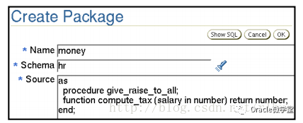 程序包是函数与过程的组合。将一些函数和过程组成一个程序包,性能和可维护性会有所提高。每个程序包应由两个独立编译的数据库对象组成: