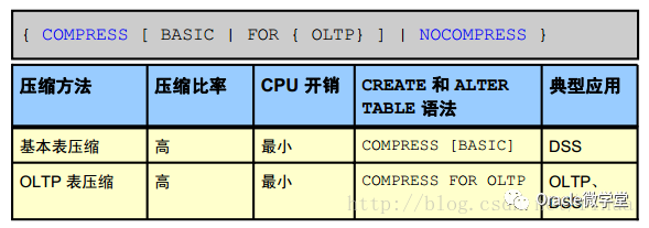 • 是使用CREATE TABLE …COMPRESS FOR OLTP…;启用的