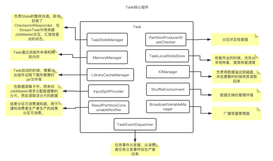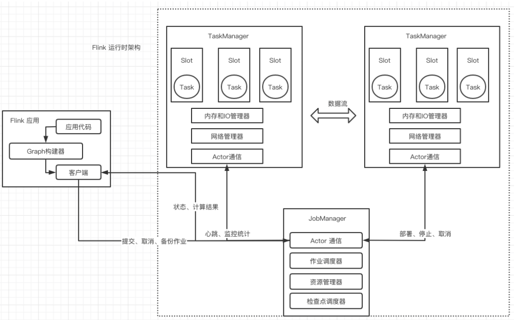 调度执行和管理(将JobGraph转化为ExecutionGraph,调度Task的执行,并处理Task的异常) InputSplit 分配 结果分区跟踪 作业执行异常 作业Slot资源管理 检查点与保存点 监控运维相关 心跳管理