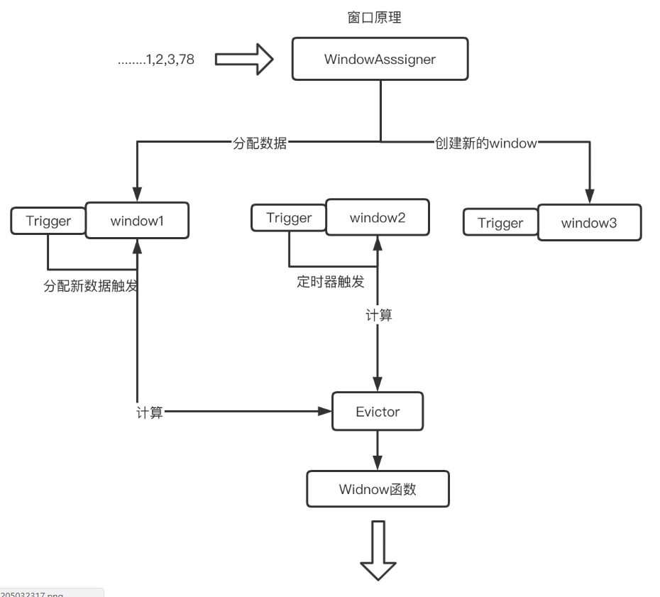 WindowAssigner(用来决定某个元素被分配到哪个/哪些窗口中去) WindowTrigger(决定一个窗口何时能够呗计算或清除,每一个窗口都拥有一个属于自己的Trigger) WindowEvictor(窗口数据的过滤器,可在Window Function 执行前或后,从Window中过滤元素) CountEvictor:计数过滤器。在Window中保留指定数量的元素,并从窗口头部开始丢弃其余元素 DeltaEvictor:阈值过滤器。丢弃超过阈值的数据记录 TimeEvictor:时间过滤器。保留最新一段时间内的元素