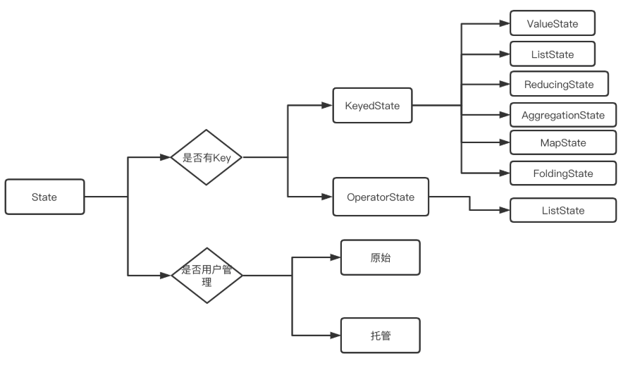 ListState:并行度在改变的时候,会将并发上的每个List都取出,然后把这些List合并到一个新的List,根据元素的个数均匀分配给新的Task UnionListState:把划分的方式交给用户去做,当改变并发的时候,会将原来的List拼接起来,然后不做划分,直接交给用户 BroadcastState:变并发的时候,把这些数据分发到新的Task即可 KeyState:Key-Group数量取决于最大并行度(MaxParallism)