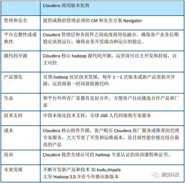 商业版本提供 Cloudera 原厂 7x24 支持服务
