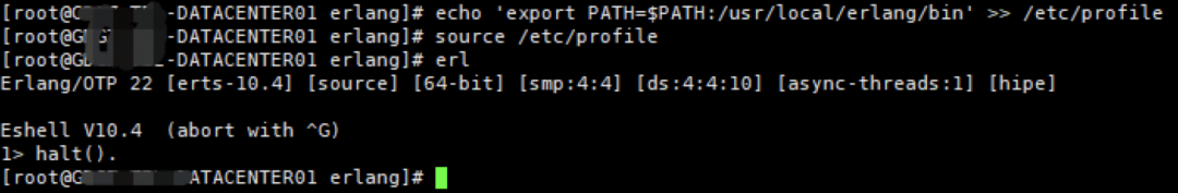 echo 'export PATH=$PATH:/usr/local/erlang/bin' >> etc/profile刷新环境变量