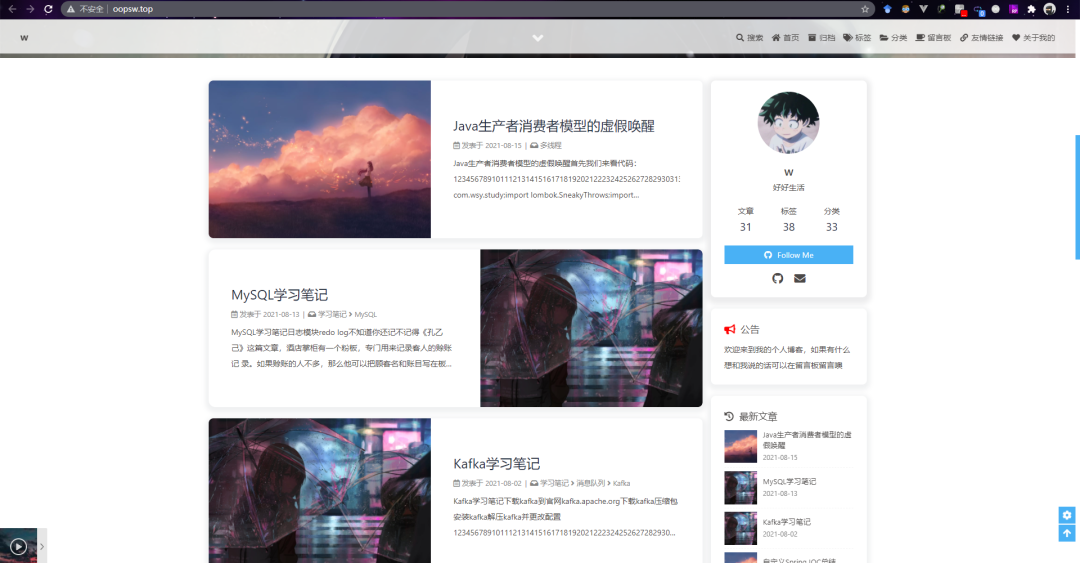 同时,这里我也鼓励小伙伴们,如果有搭建个人博客的话,最好能够购买云服务器然后上线,并且能够持续的在上面写一些文章,最后在把域名写到自己的简历上,这在简历上也是非常加分的,小w 在最开始是没有个人博客的,后面和我交流了一下后,用 hexo 搭建了一套个人博客系统,并在上面输出了 30 多篇的文章。
