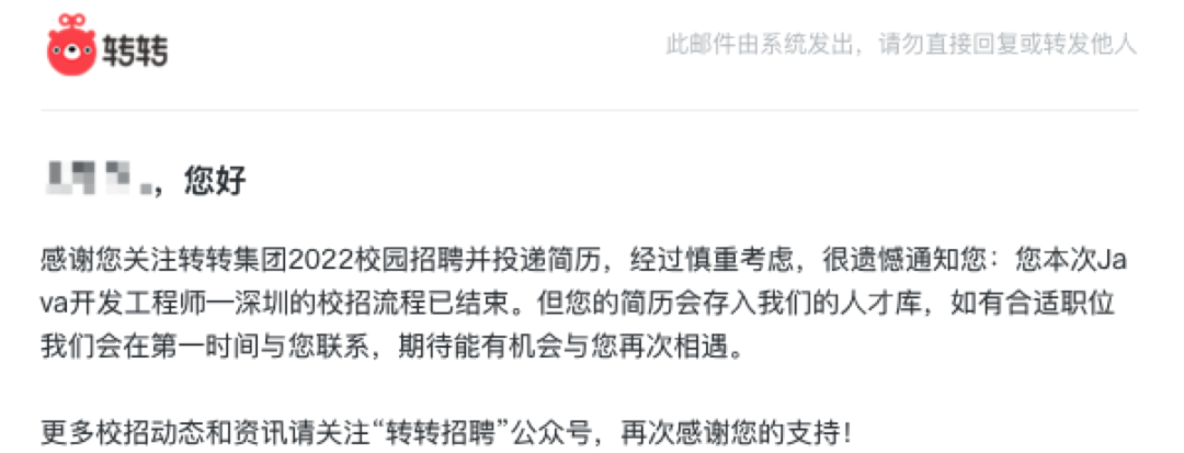 在后续的 8、9月份,大部分的公司秋招正式批也都开启了,我也投了非常多的公司,我估计应该有 80 家公司吧,但是基本上都是投了之后就没有消息了,部分通知我笔试的,在我笔试后也是没有消息了,我自认为笔试做的都还不错,但是可能是因为 简历 的问题吧:没有实习经历,没有比赛经历,还是 民办二本,没有任何竞争优势。所以收到很多公司的感谢信。