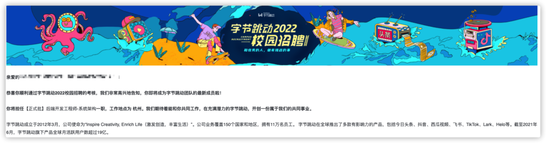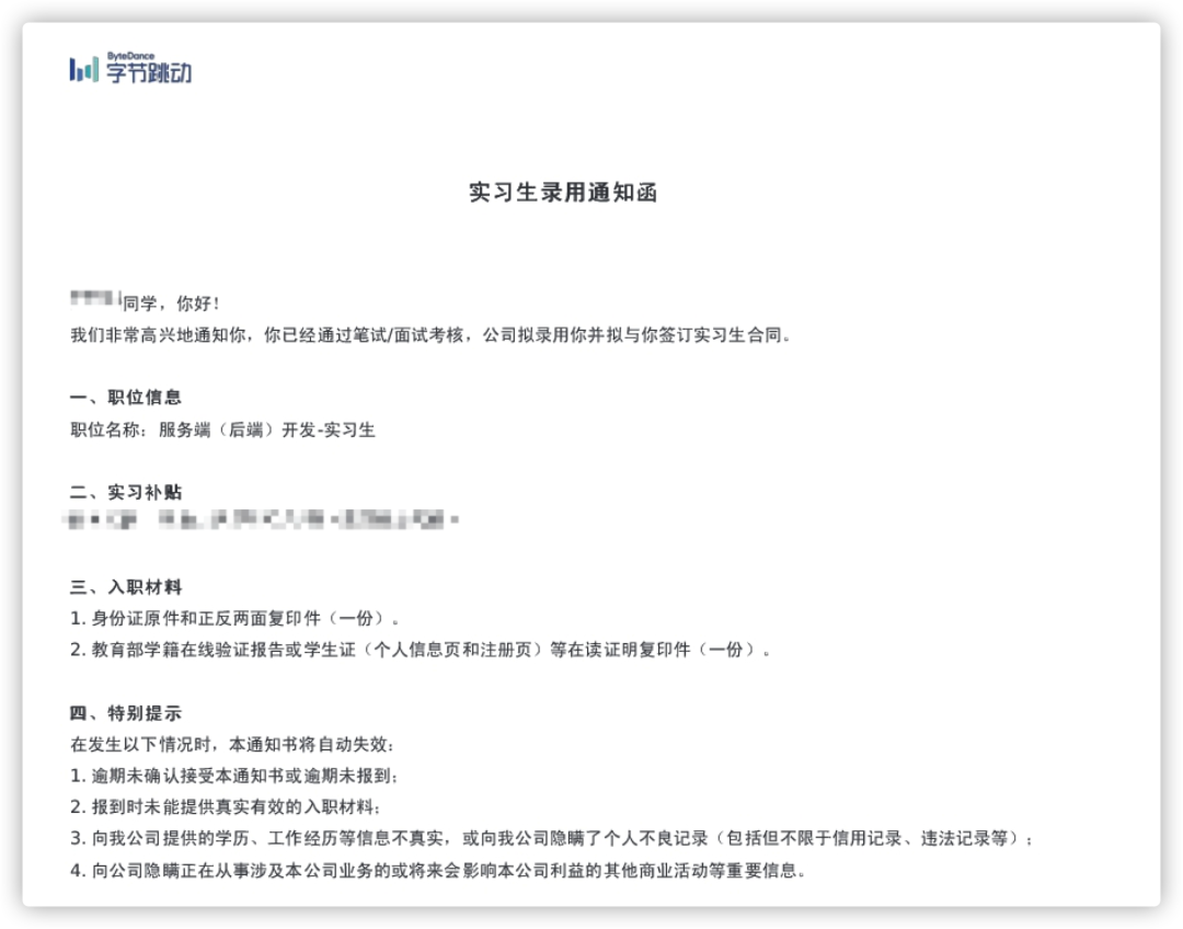 在拿到字节跳动 实习Offer 的时候,是特别开心的。但是因为实习在北京,也没办法过去。通过拿到这两份大厂的实习Offer,也让我在秋招之路上坚定信心了。