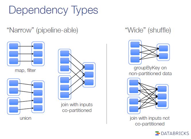 RDD的依赖关系分为两种:窄依赖(Narrow Dependencies)与宽依赖(Wide Dependencies,源码中称为Shuffle Dependencies)