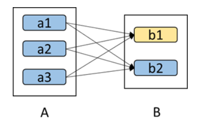 Ø 如下图所示,b1分区丢失,则需要重新计算a1,a2和a3,这就产生了冗余计算(a1,a2,a3中对应b2的数据)。