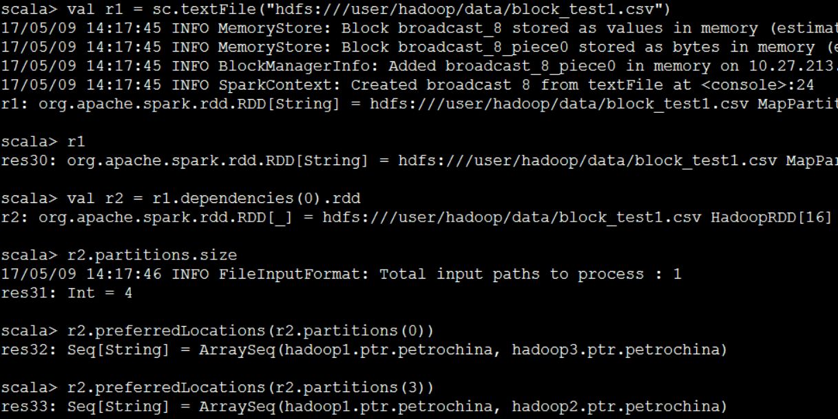 val r1 = sc.textFile("hdfs:///user/hadoop/data/block_test1.csv")