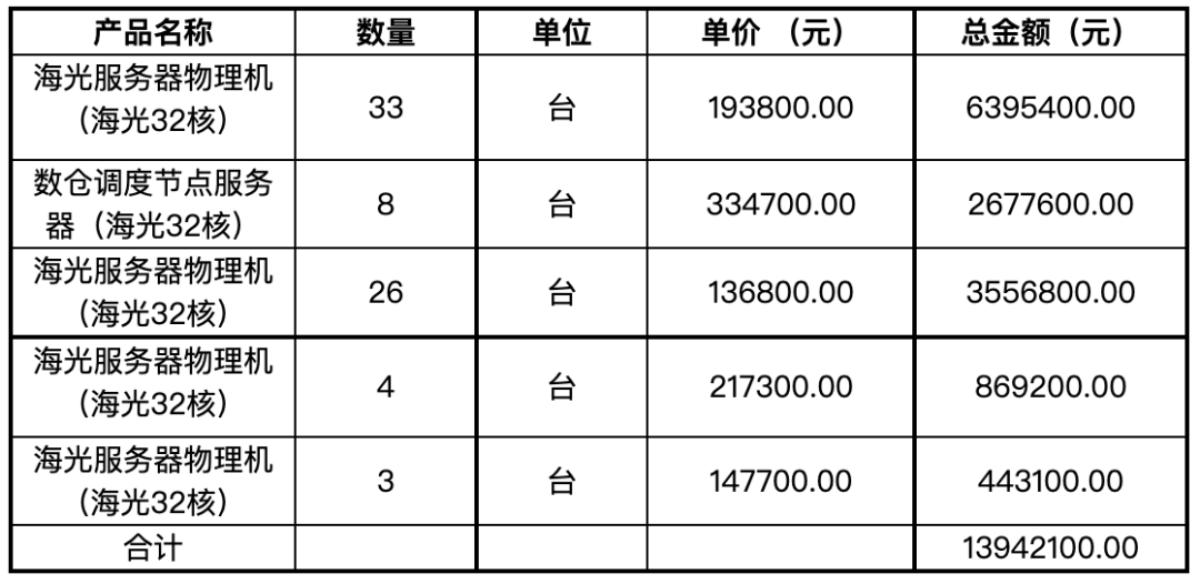 6.4亿元鲲鹏服务器采购(华为4.6亿、新华三1.2 亿、同方0.6亿);5.2亿海光(中科可控3.5亿、浪潮 1.7亿)