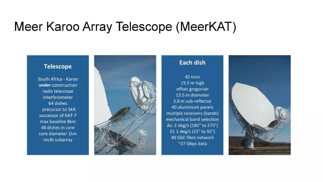 MeerKAT于2018年7月13日在SARAO的支持下成立,是一个由64个天线组成的射电望远镜,已在南非北开普省建造。