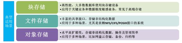 以上三类存储在IO路径上提供不同层次的封装,一般而言,块存储性能更优,文件存储更注重数据即时性,对象存储更注重数据长效性。