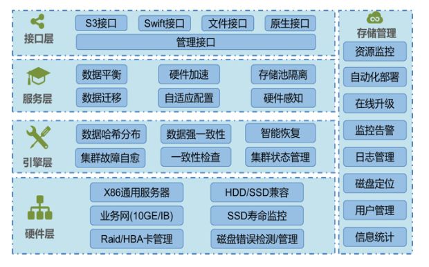 苏研的分布式存储选型,主要基于开源社区的明星项目ceph以及glusterfs来进行定制开发: