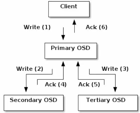 通过有代表性的Ceph客户端(主OSD)执行数据复制的能力,Ceph OSD守护进程相对的减轻了Ceph客户端的这一职责,同时确保了数据高可用以及安全性。