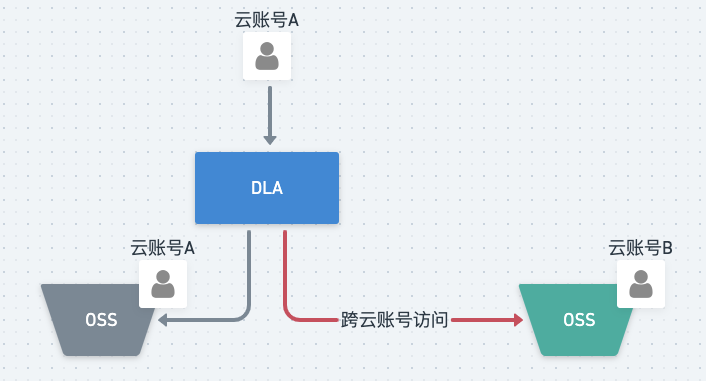 在使用Data Lake Analytics(et.aliyun.com/bdad/data)进行OSS数据分析时,通常云账号A是访问自己的OSS bucket数据,如果有访问其他云账号(假设云账号B)的OSS数据的需求,本文正好帮到您,教您如何通过DLA实现DLA跨云账号分析OSS数据。下文都是假设“云账号A需要通过DLA访问云账号B的OSS数据”。