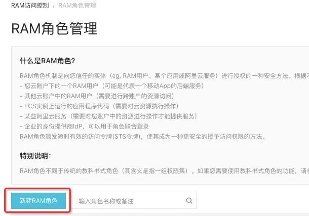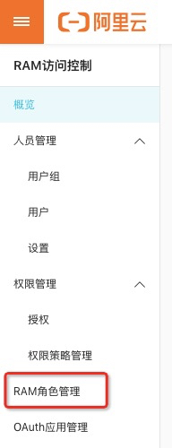 使用云账号B登录访问控制(https://ram.console.aliyun.com),点击RAM角色管理。