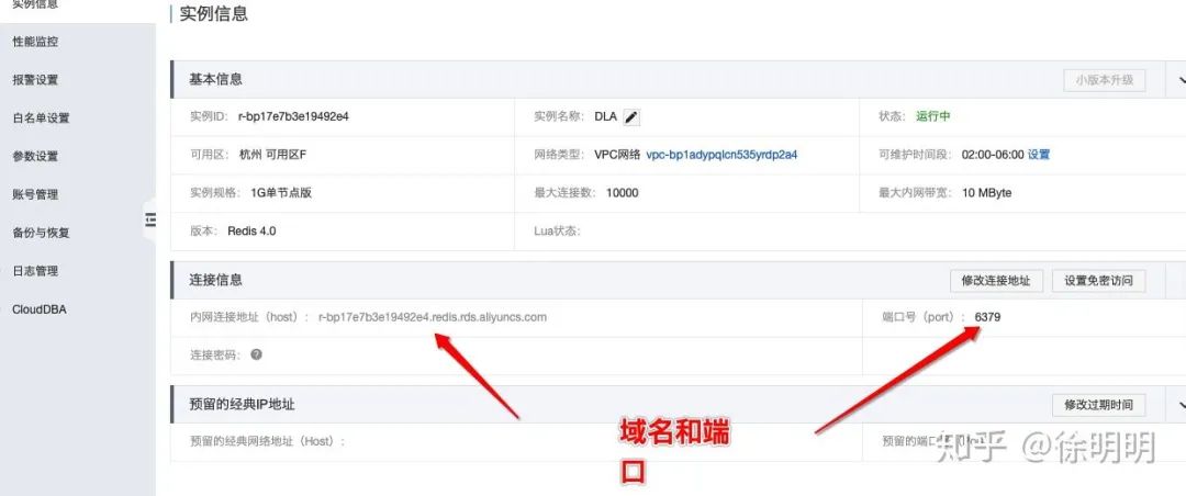 是一个前缀,具体的用途后面再细说,redis服务的域名和端口你可以从阿里云控制直接查询到: