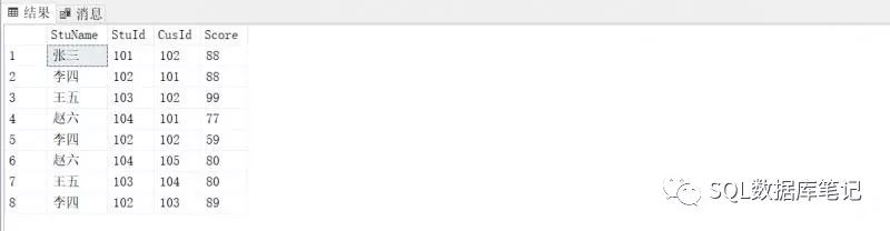 select A.StuId ,A.CusId ,A.Score ,B.StuName