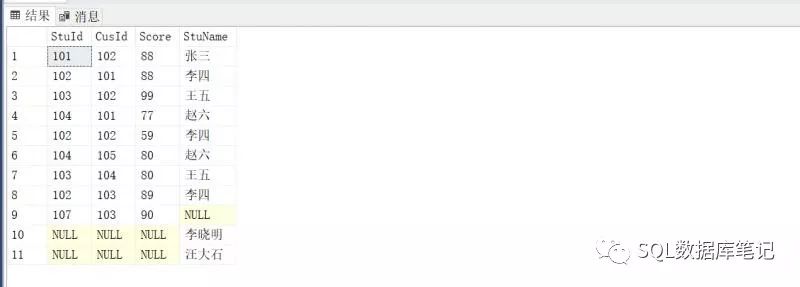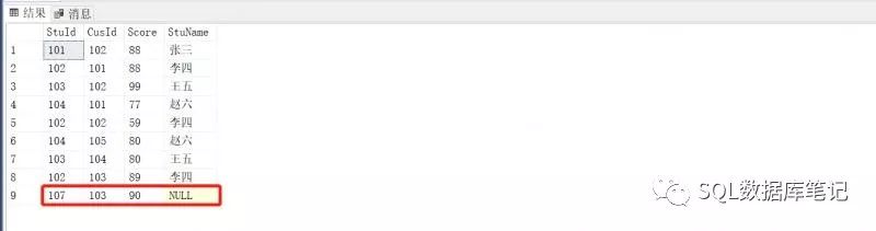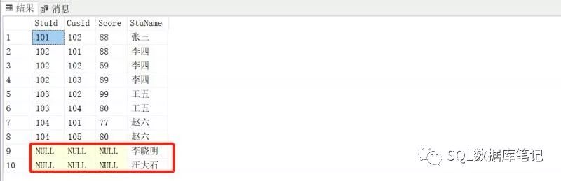 从左表(StuScores)返回所有的行,即使右表(Students)中没有匹配。