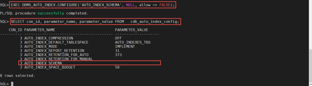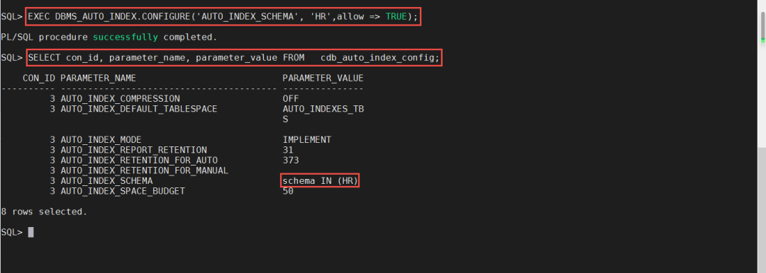 EXEC DBMS_AUTO_INDEX.CONFIGURE('AUTO_INDEX_MODE','IMPLEMENT');