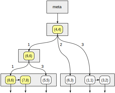 因此,SP-GiST访问方法的思想是将值域拆分为不重叠的子域,每个子域又可以拆分。像这样的分割会引起不平衡的树(不像B树和常规的GiST)。