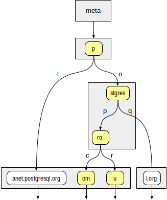 有两个选项:«p»+«l»(无需下降,即使不潜的很深也很清楚)和«p»+«o»+«stgres»(继续下降)。对于«stgres»节点,需要再次调用一致性函数以检查«postgres»+«p»+«ro。»(继续下降)和«postgres»+«q»(不需要下降)。