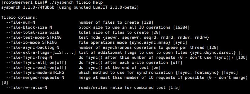 --file-io-mode: 文件测试模式,包含seqwr(顺序写)、seqrewr(顺序读写)、seqrd(顺序读)、rndrd(随机读)、rndwr(随机写)、rndrw(随机读写)