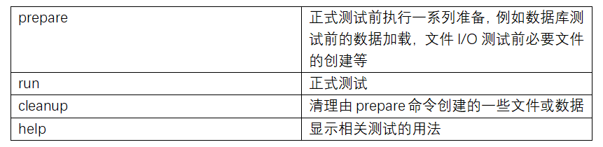 testname: 可以指定一个lua的脚本进行测试,或是指定关键字(fileio, cpu,memory)来使用sysbench内置的方法测试相关项目