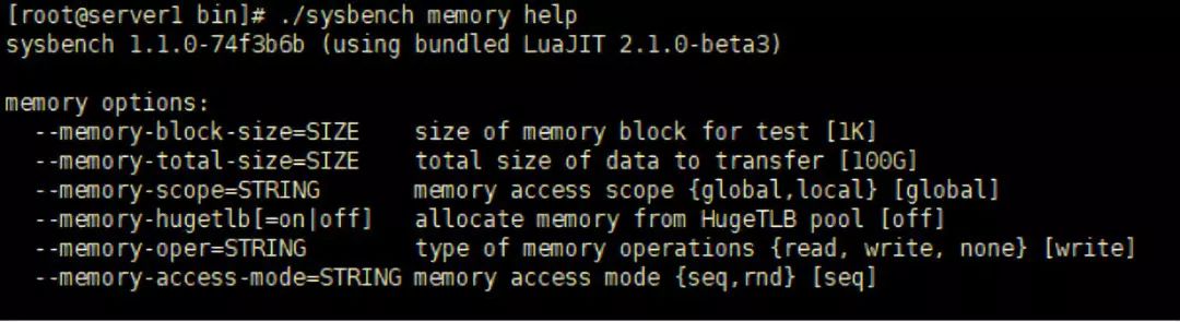 当testname指定为memory时,用户可以使用sysbench来测试内存访问的性能。